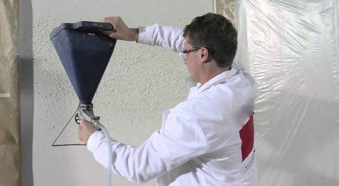 Теперь нужно наполнить флокатор сырьем, взять его в правую руку (для левши — в левую) и расположить перпендикулярно обрабатываемой поверхности на расстоянии 10–15 сантиметров