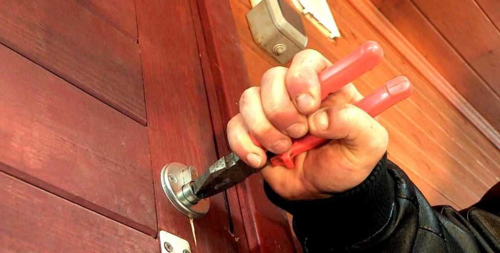 Доставание цилиндра. С другой стороны двери достают броненакладку и винты. По выступающим местам цилиндра стучат молотком. Задевание сердцевины. В ход можно пустить отвертку или пинцет. Их вводят в скважину и немного поднимают штифты в секретке. Таким образом удастся вынуть сломанную часть и попасть внутрь дома