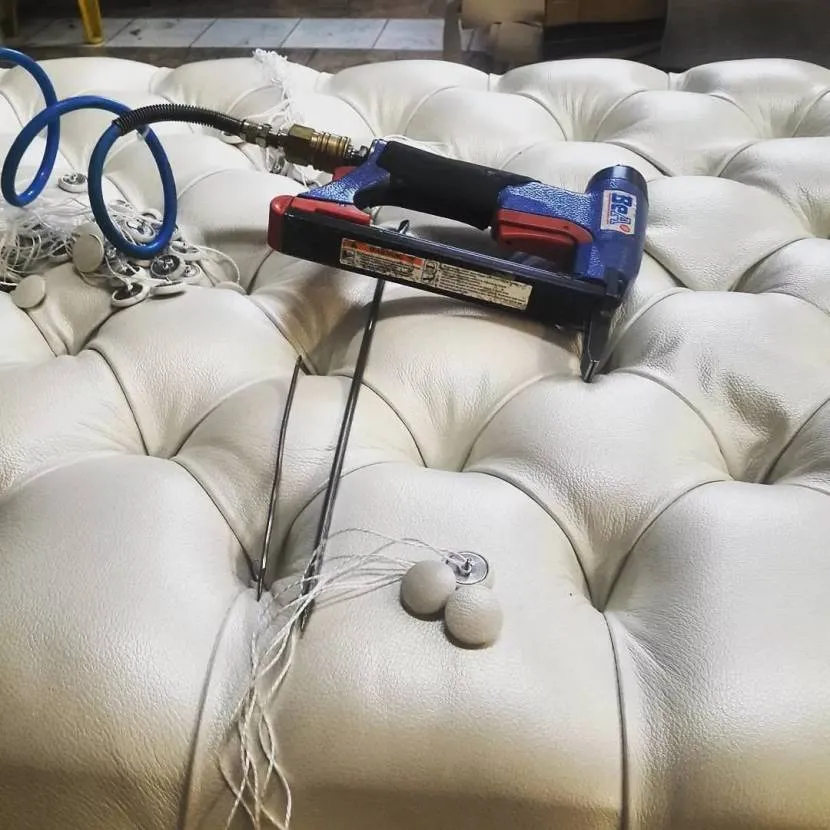 Пуговицы для каретной стяжки подбирают в зависимости от дизайна комнаты и стиля самого предмета мебели. Красиво смотрятся разнообразные гвоздики с цветными стразами или шляпками, украшенными резьбой. Можно даже установить светодиоды, это будет необычно и очень эффектно.