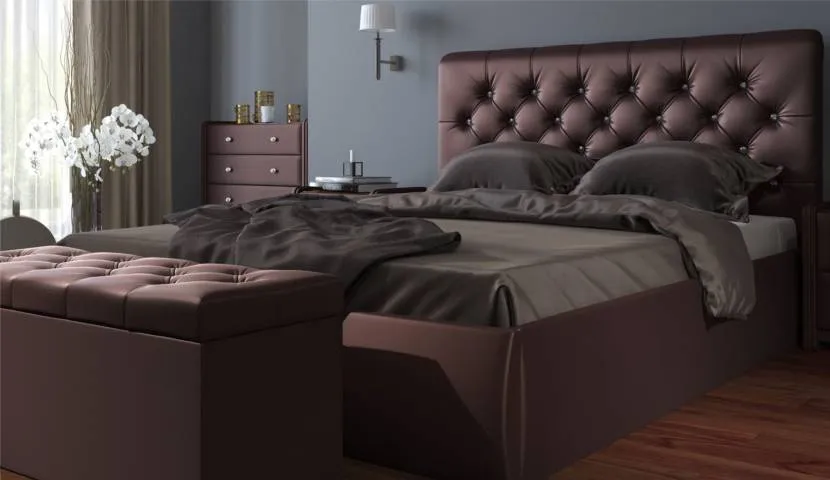- На материале для обивки мебели нельзя экономить. Чтобы изголовье кровати получилось действительно надежным и прослужило долгие годы, понадобится качественное полотно. Используется натуральная кожа или экокожа, мебельный бархат или другой прочный материал класса люкс;
