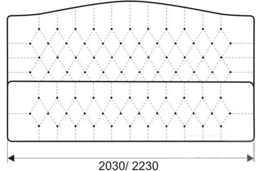 - Наносят размеры и положение рисунка. Красивее смотрится классический ромбовидный рисунок, поэтому чаще выбирают именно его. Вид изголовья будет зависеть от размера ромбов, его определяют по своему вкусу.