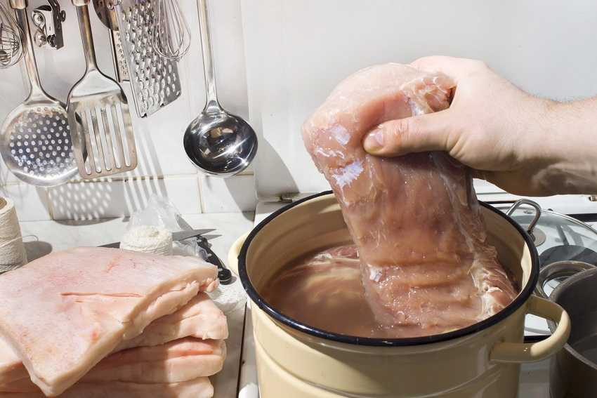 После маринования продукта необходимо отмочить его в воде. Длительность этого процесса колеблется от 6 до 24 часов. Затем из продукта убирается лишняя влага. Для этого его нужно протереть бумажными полотенцами и провялить. На следующем этапе можно приступить к копчению провизии.