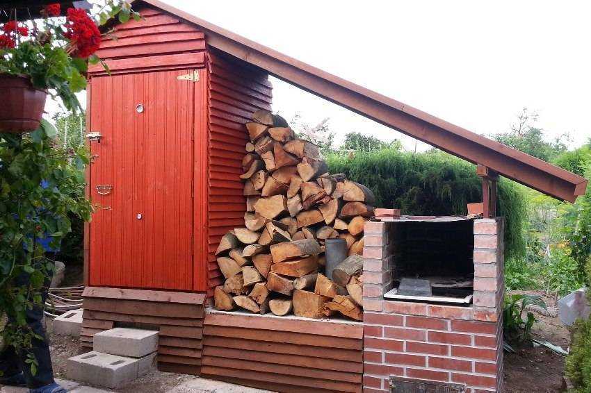 Для стен используется красный кирпич. Величина коптильни полностью зависит от пожелания хозяина. В середине можно сделать небольшое окошко с выходом на северную сторону, чтобы прямые солнечные лучи не навредили продуктам.