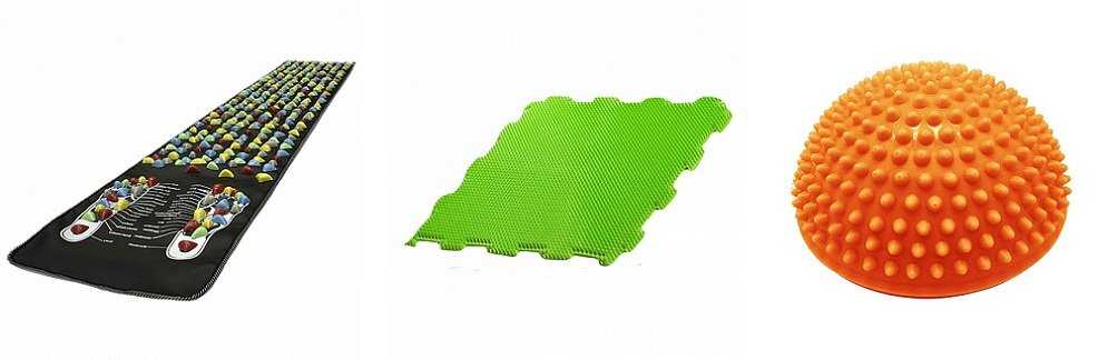 . Отдельные изделия, которые имеют выступы разной формы и высоты. Эти выступы обеспечивают воздействие на отдельные участки стопы с требуемым усилием. В результате этого стимулируются микросокращения мышц стопы, которые обеспечивают позитивный эффект. -
