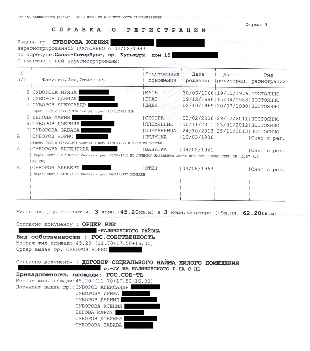 Справка о регистрации. В ней можно узнать метраж и количество прописанных человек. Кроме того, этот документ необходим, чтобы попасть в очередь на квартиру. Справку получают в отделении вселения и регистрационного учета граждан (бывший паспортный стол). Для получения достаточно паспорта