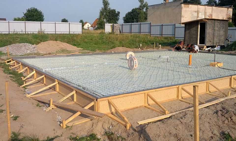 По окончании монтажа, проводят армирование будущего основания: устанавливают подготовленные армокаркасы и закладные детали, если этого требует конструкция.