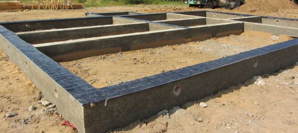 После сборки фундамента внешняя поверхность несущего основания обрабатывается гидроизоляционными материалами. Наиболее часто используется битумная мастика и специальные битумные мембраны, которые имеют самоклеящуюся основу.