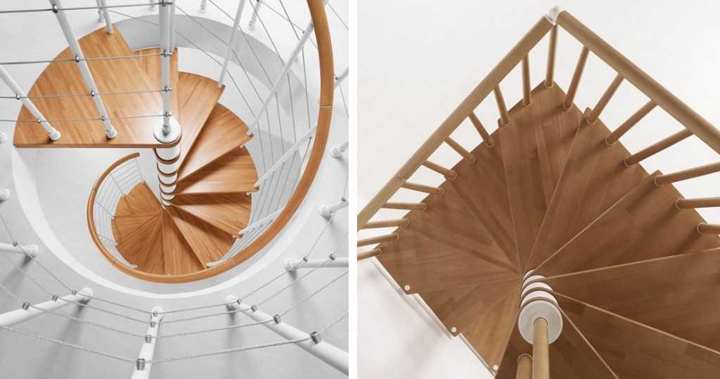 Маршевую лестницу можно легко изготовить самостоятельно, используя только древесину, а вот винтовую — нет. Понадобится центральная ось, которая чаще всего изготавливается из металла, а не из дерева, и поручень винтовой формы, который тоже редко делают из древесины. Также придется делать ступеньки особой формы — приобрести ровные доски одинакового размера не получится. Все это значительно повышает стоимость конструкции, а во время использования затраты не окупятся — наоборот, винтовая лестница гораздо менее удобна. Поэтому лучше выбирать классический маршевый вариант — он и дешевле, и удобнее.