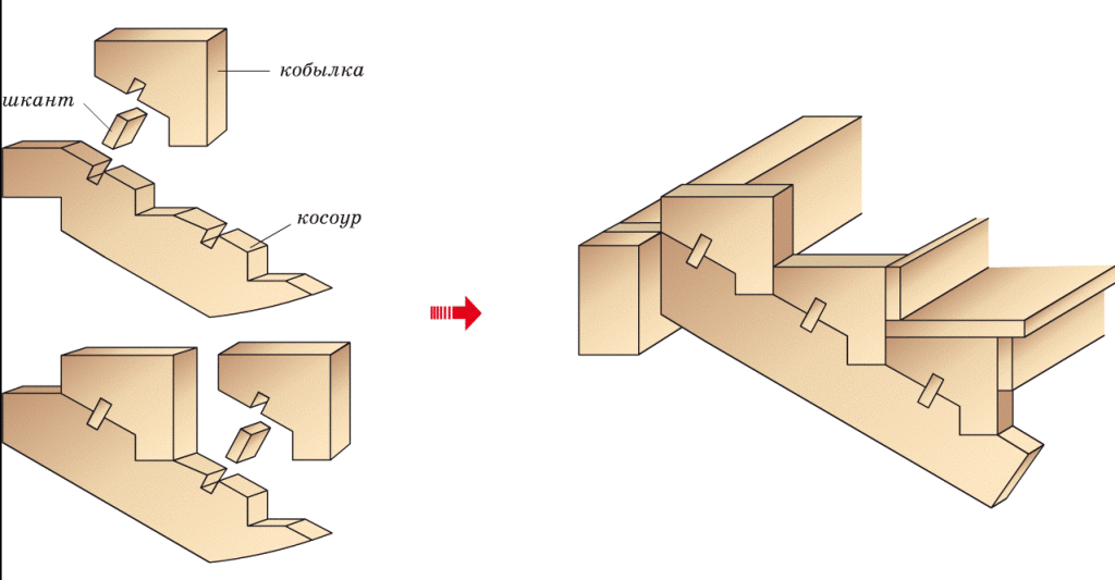 - больцы – металлические (обычно) элементы, соединяющие ступени в единую конструкцию;