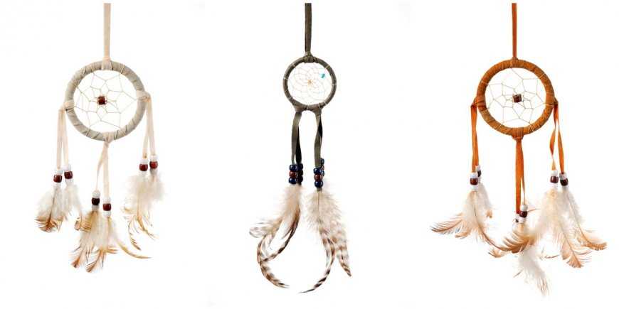 Самые ранние ловцы снов были сплетены так, чтобы максимально походить на паутину: они перекрещивались на основной нити посередине. Эти амулеты ещё не украшались перьями.