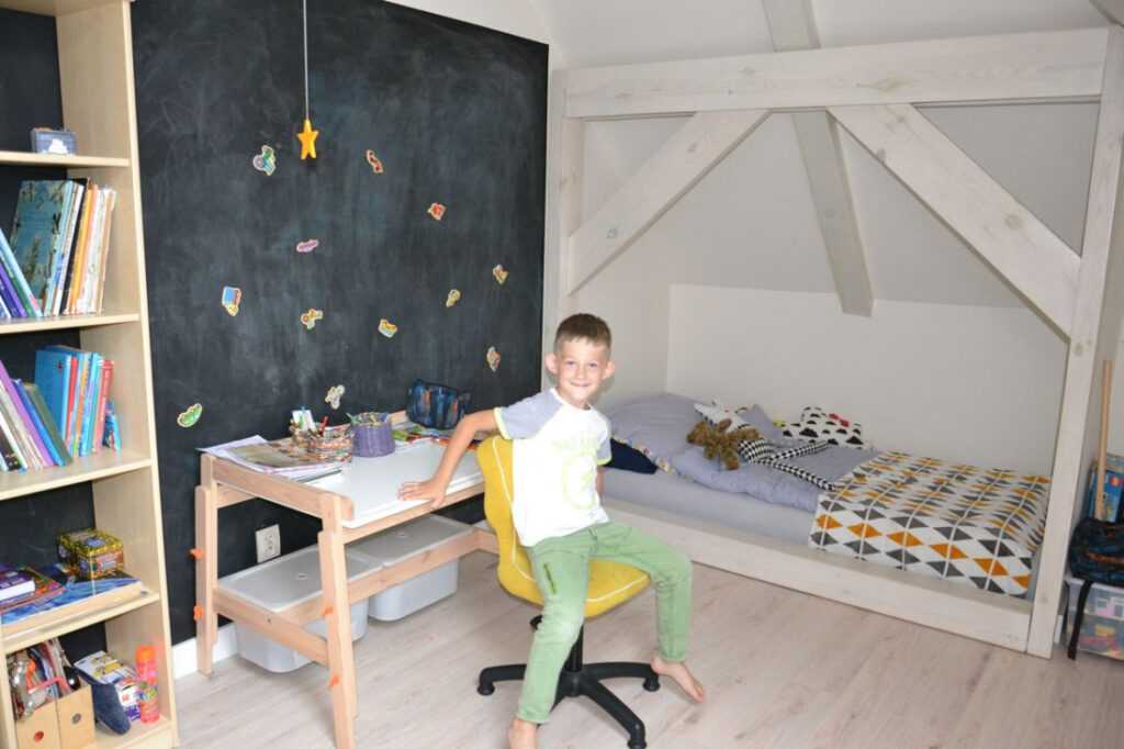 Особенно, если у вас растут творческие дети, такая стена поможет сохранить цвет стен, потому как написанное легко стирается.