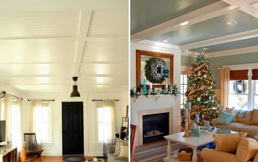 Для монтажа на потолок производят панели белого цвета разной чистоты. Но можно встретить цветную вагонку или стандартные ПВХ-панели различных тонов.