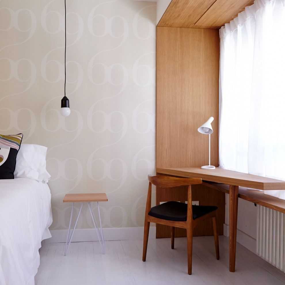 Небольшой деревянный столик-подставка на кровати будет удобным дополнением