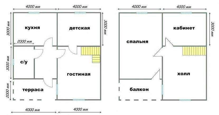 Планы двухэтажных домов с размерами 9×9 и 8×8 метров предполагают внушительный вес, поэтому к фундаменту будут особые требования. Внешняя и внутренняя планировка должна учитывать равенство стен.