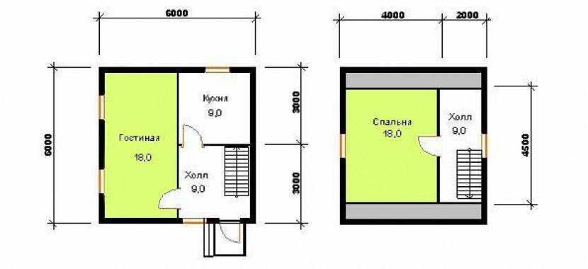 Одноэтажный дом площадью 6х6 имеет не так много вариантов планировки, как двухэтажные дома. Ведь на одной площади необходимо расположить все необходимые помещения и разделить их тонкими перегородками.
