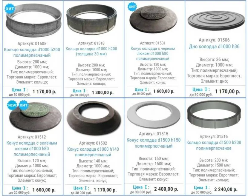 Параметры современных пластиковых колец для колодцев: размеры, цены