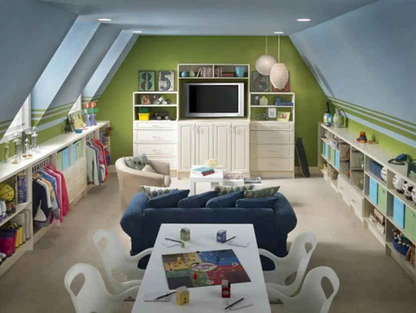Что касается стилистического оформления, то мансарду и чердак можно превратить в детскую, в дополнительную спальню, в рабочий кабинет, в комнату отдыха, в мастерскую и так далее. Здесь все зависит от фантазии и потребностей хозяев. Можно совместить в одном помещении сразу несколько зон. Тогда комната получится многофункциональной.