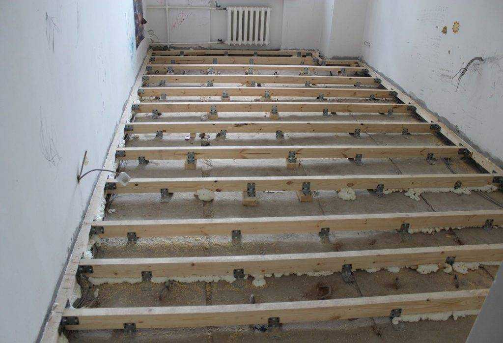 Использование в монтаже пола конструкции из лаг позволяет решить сразу несколько задач: