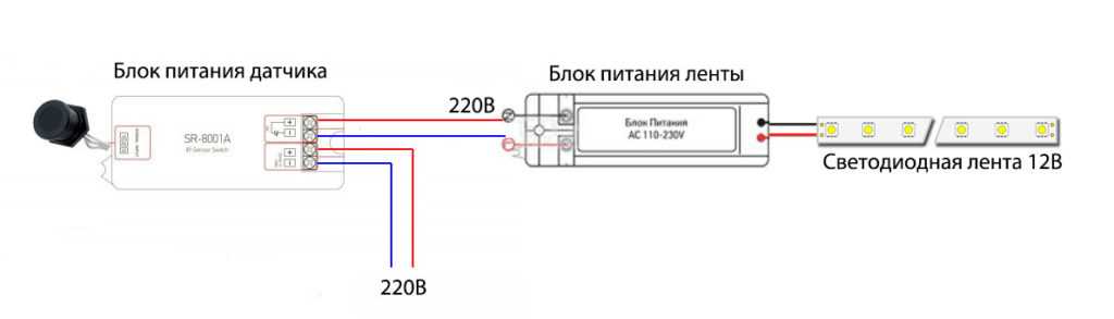 схема подключения всей подсветки рабочей зоны с использованием ИК датчика