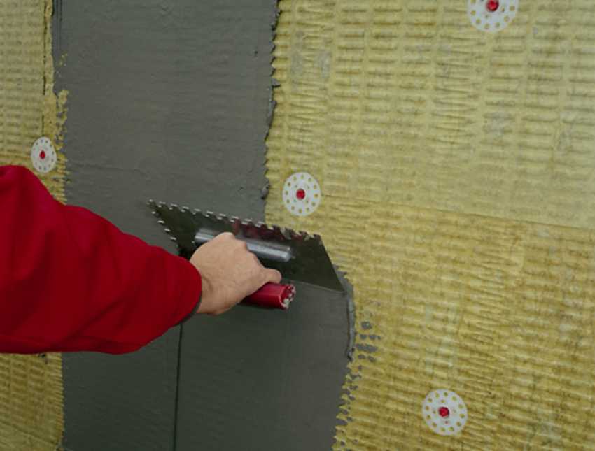 Если планируется сделать «мокрый» фасад, то, как правило, монтаж выполняется с помощью клея.