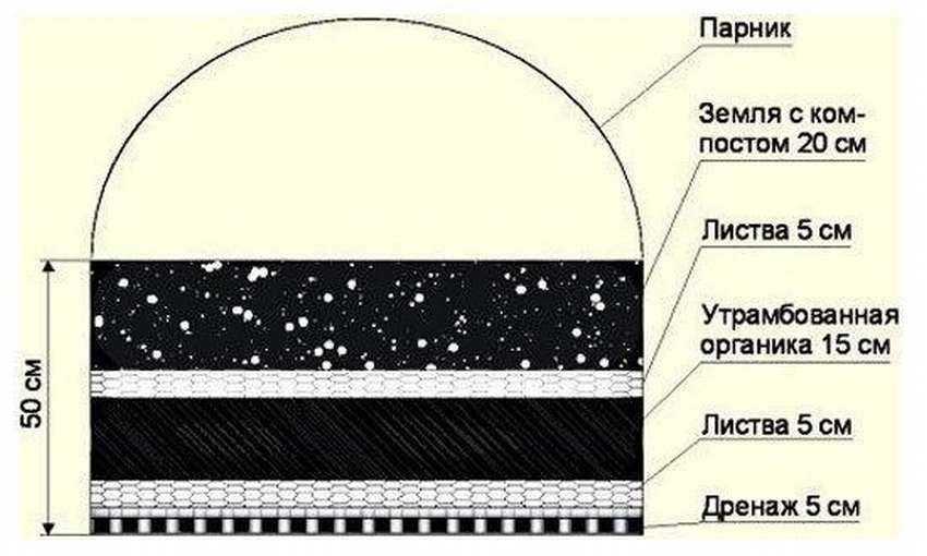 При обустройстве коробов весной, формировать слои необходимо за месяц до высаживания растений. Причем грядки дополнительно несколько раз обильно поливают. Если на стенках прикрепить устройства для крепления дуг, то можно легко создать временную теплицу для выращивания рассады или более раннего сева растений. Эта возможность особенно важна для дачных участков в холодных регионах.