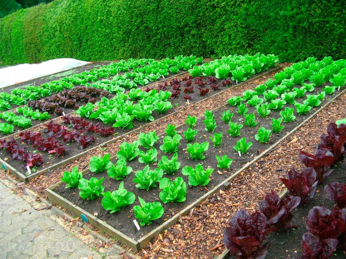 Высаживать растения на грядках (особенно салаты, зелень) лучше плотней, это поможет сохранить влажность почвы и предупредит рост сорняков.