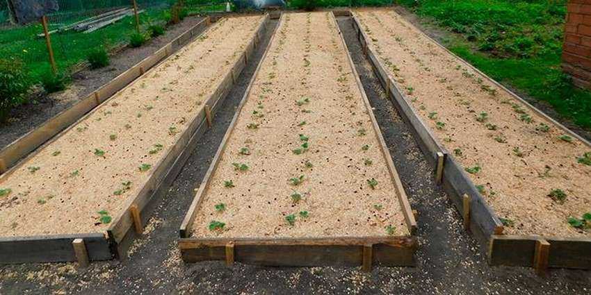 - использовать песок или щебень для засыпки тропинок между рядами.
