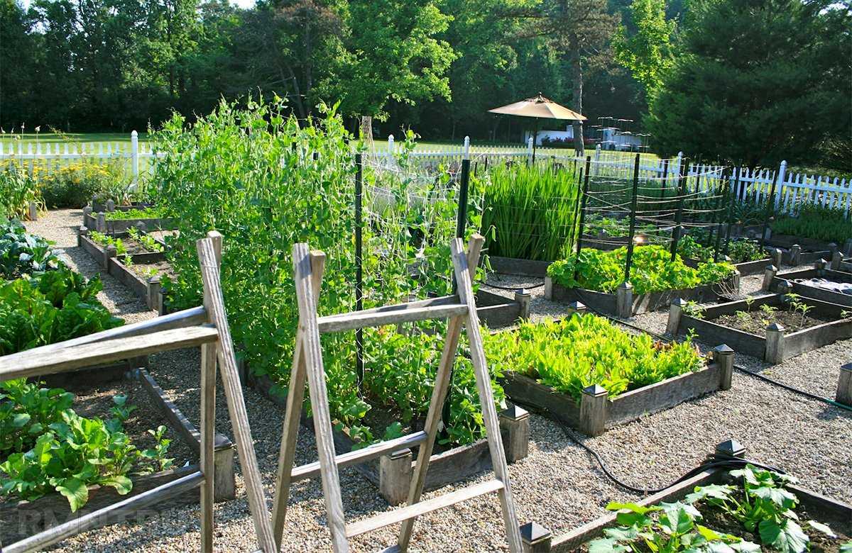 Французский огород формируется по законам симметрии, грядки чередуют с клумбами. Строгая планировка подчеркивает красоту зданий. Классический вариант не всегда уместен. Любители природы ценят английские варианты огородов с газоном, вертикальным озеленением.