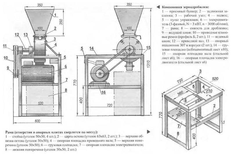 Самодельная зернодробилка своими руками: чертежи, размеры, видео