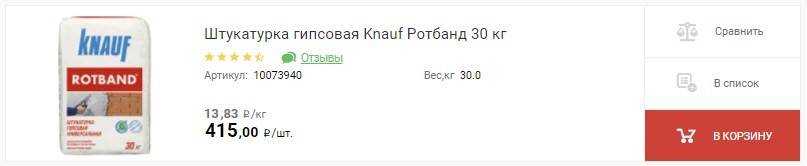 Штукатурка Ротбанд 30 кг – цена в Леруа Мерлен