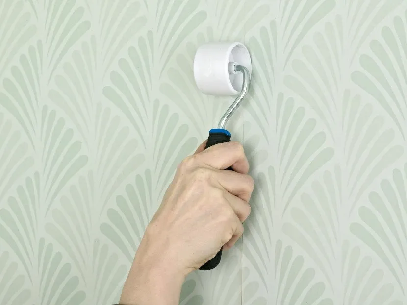 - Разглаживать полотна лучше гладким валиком. Он выгоняет воздух и не стирает узор.