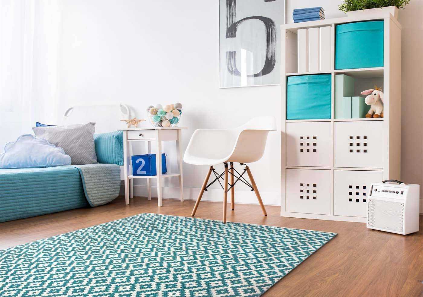 Эксперты не рекомендуют применять бирюзовый цвет в интерьере детской комнаты. Своим успокаивающим и расслабляющим действием он может притормозить тяготение ребенка к становлению