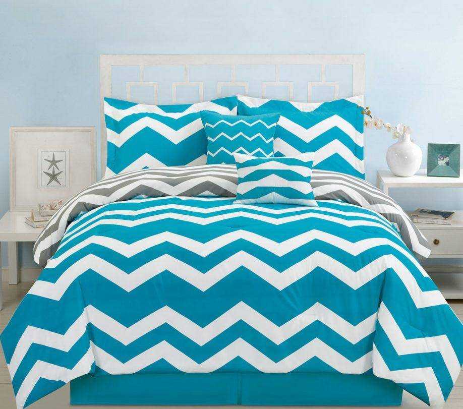 Небесно-голубой оттенок бирюзового в интерьере спальни