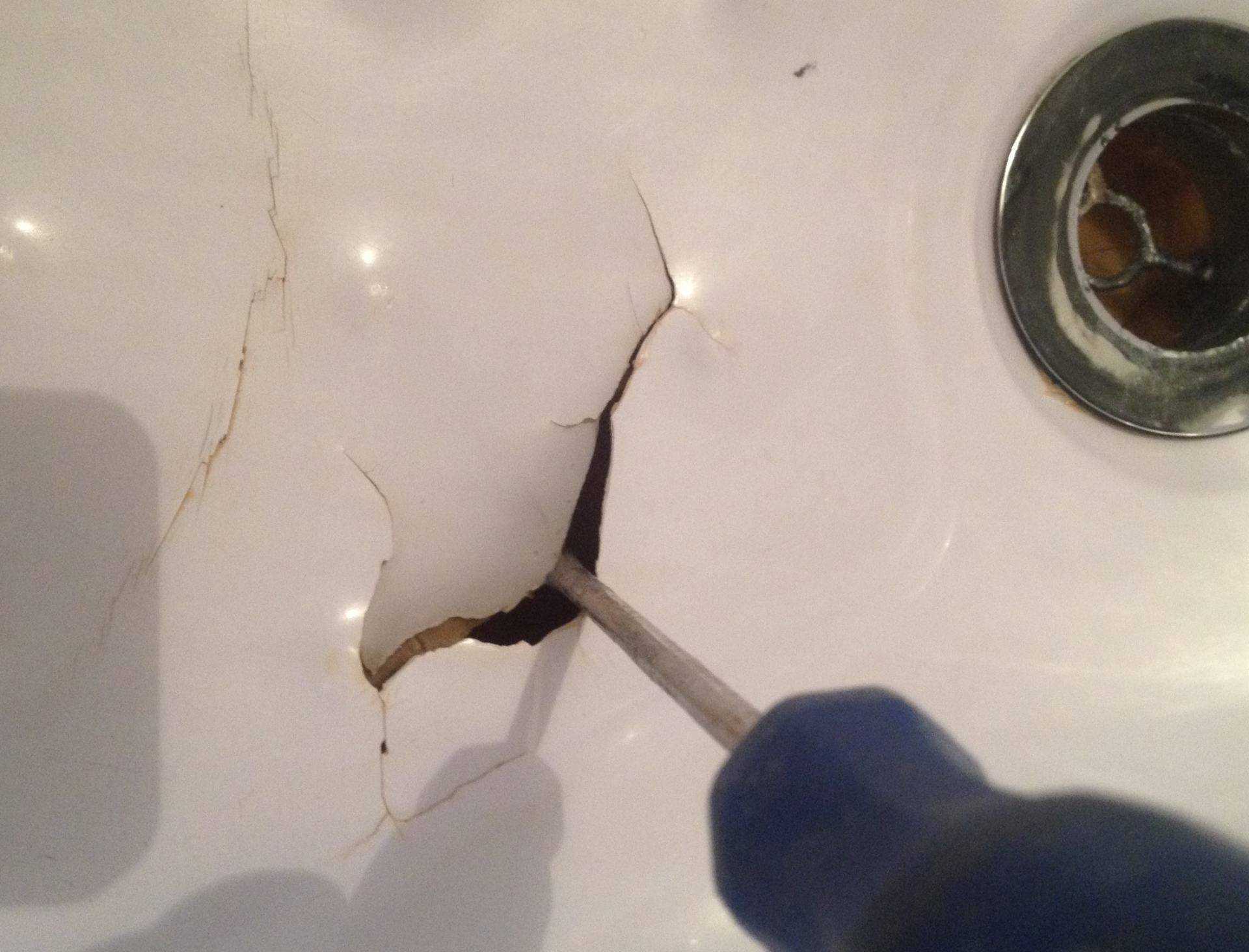 Еще одна опасность трещины – ее способность к увеличению размеров. Она расползается под воздействием веса, при использовании моющих средств и даже при попадании воды.
