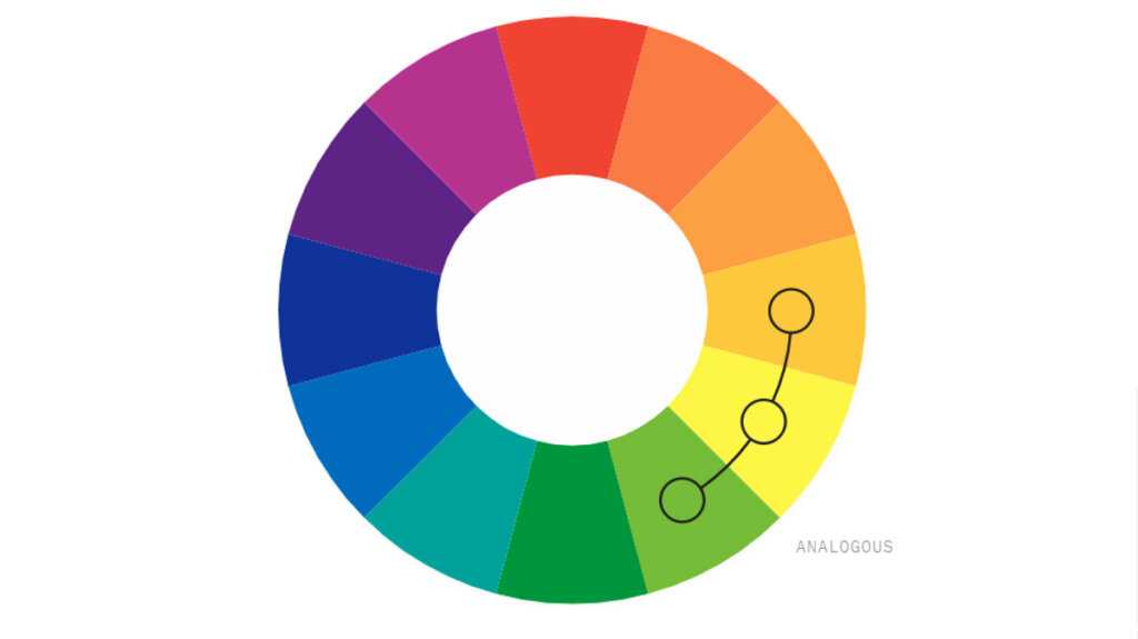 В аналоговой цветовой схеме используют цвета, которые находятся рядом друг с другом на цветовом круге. Также иногда используется расширенная аналоговая схема, в которую можно включать цвета, расположенные на круге через один
