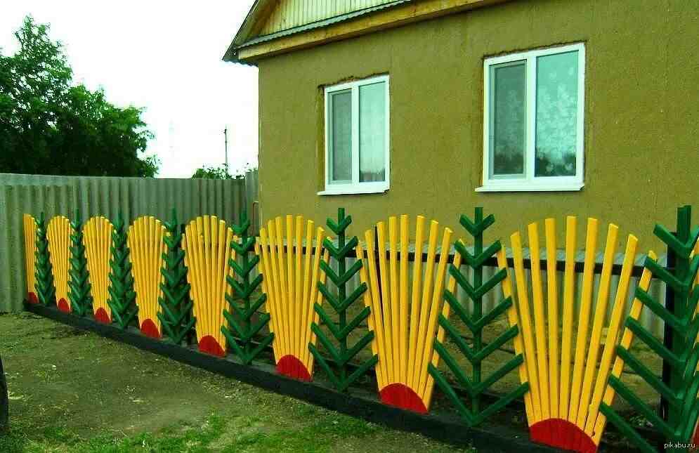- Ограду лучше красить пастельными тонами, а яркость придать за счет декоративных элементов яркого колера.
