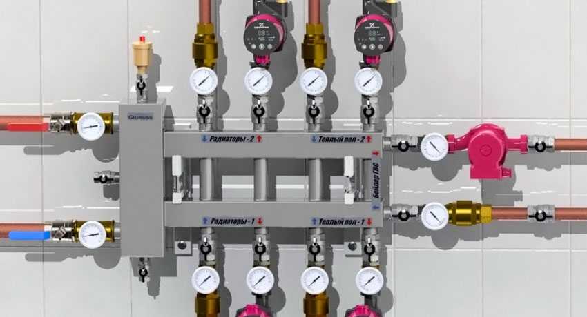 Распределительная гребенка облегчает эксплуатацию и ремонт оборудования. Запорная и регулирующая арматура системы теплоснабжения дома находится в одном месте. Увеличенный диаметр коллектора обеспечивает равномерный расход между отдельными контурами.