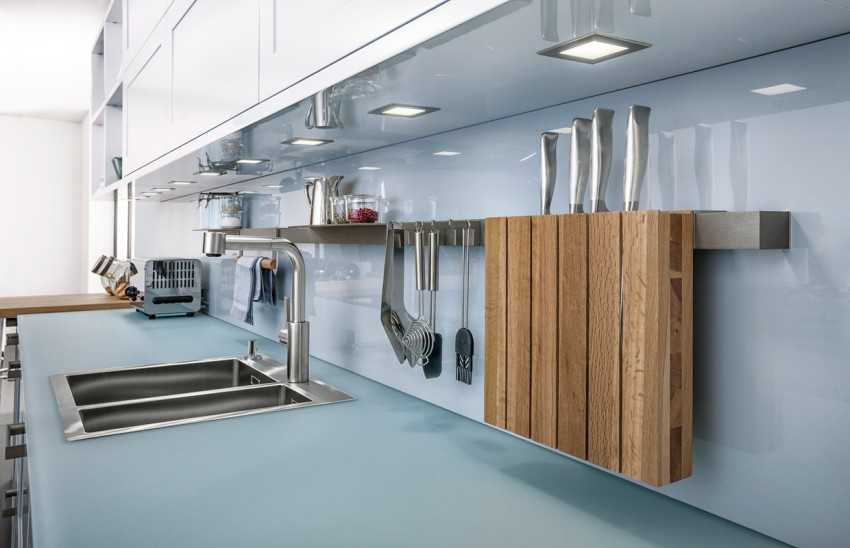 Но не стоит забывать, что среда на кухне достаточно агрессивна, поэтому не каждый материал подойдет для рейлинга у рабочей зоны. Испарения, летящие капли жира, повышенная влажность могут повредить конструкцию, снизив функциональность и испортив внешний вид системы.