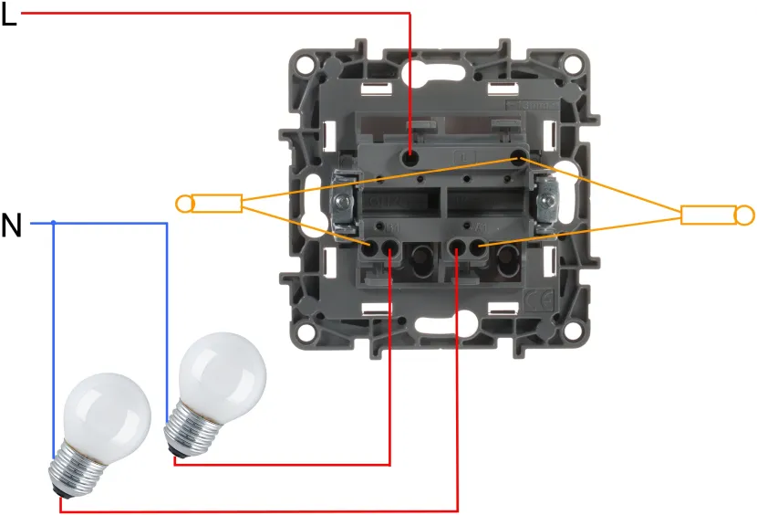 Схема подключения двухклавишного выключателя на две лампочки