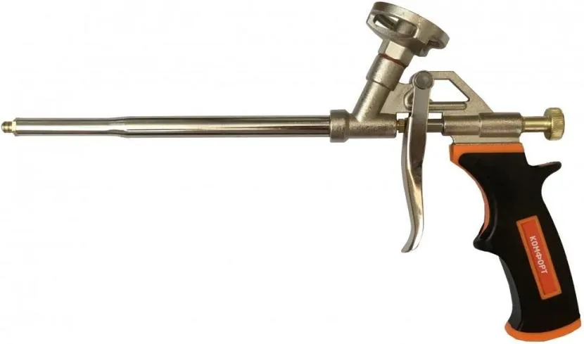 | Пистолетная (рукоятка) | Максимально удобная (эргономичная) часть инструмента, которая помещается в ладони. Чем она комфортнее для пользователя, тем лучше будет производиться управление инструментом и запенивание объекта в целом. |