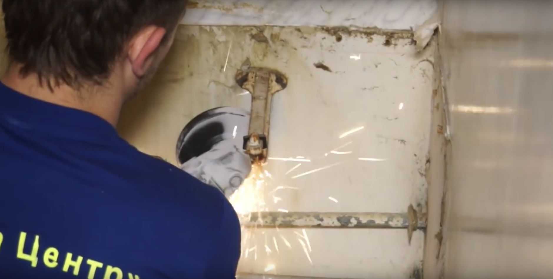 Для съема старой поверхности дополнительно пригодятся болгарка, шпатель и монтажка. Всю поверхность избавьте от лишних металлических конструкций и старого покрытия.