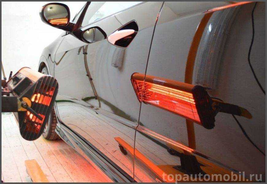 Для нанесения глазури используется краскопульт. При локальном ремонте допускается обработка участка баллончиком. В любом случае распыление краски должно быть направлено перпендикулярно кузову и осуществляться равномерно, так риск появления пятен будет значительно ниже.