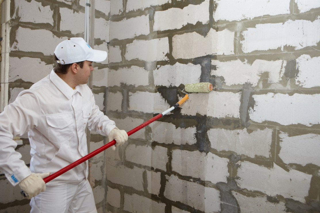 - Основание должно быть чистым, поэтому проводится промывание ее с водой, избавляются от всех видов загрязнений, отслаивающихся элементов, все они могут препятствовать надежной фиксации. Если обработка будет проводиться на поверхности из керамзитобетона, кирпича керамического типа, пемзового камня, которые не так давно уложили, то следует сделать поверхность влажной;