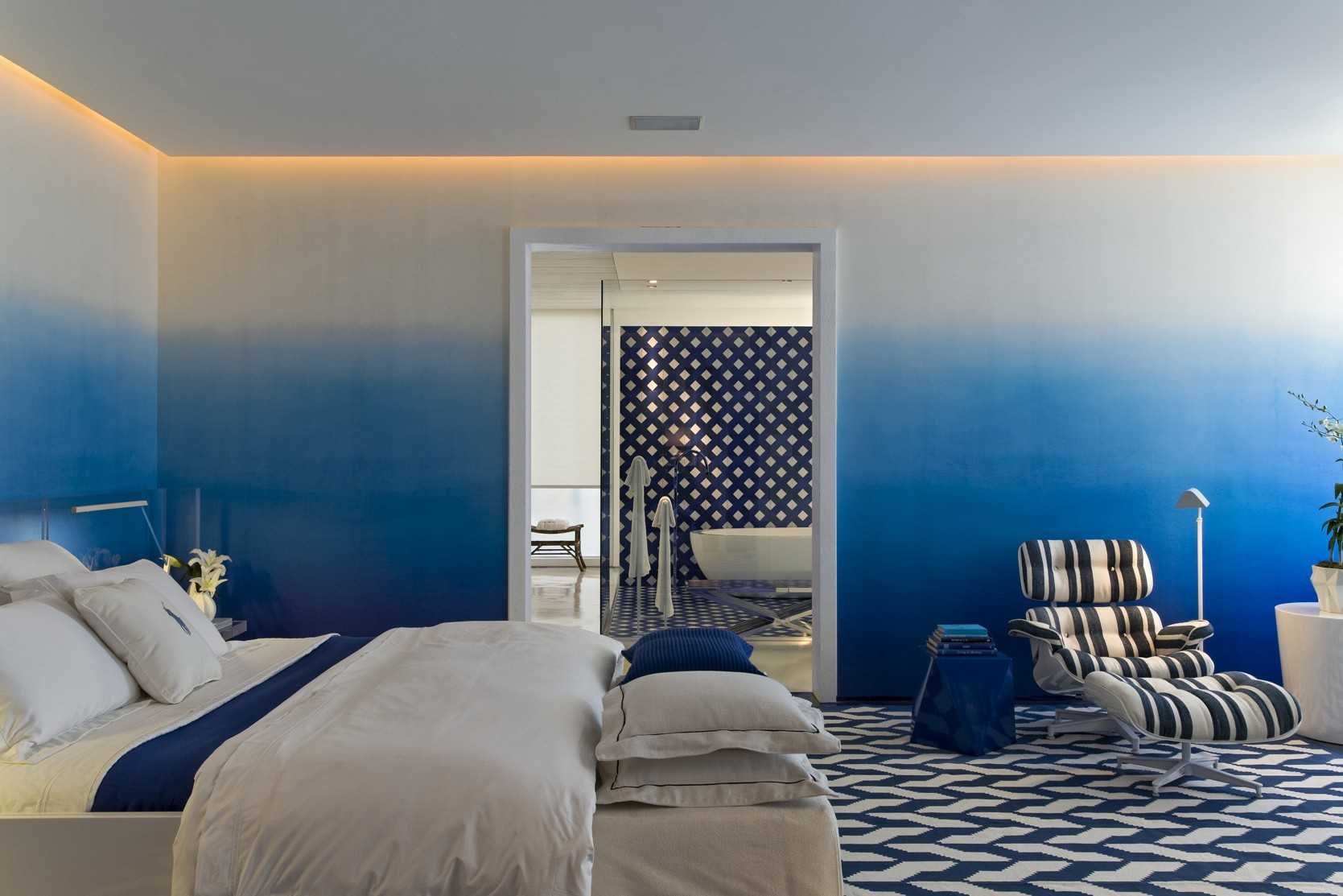 В интерьерах с голубой цветовой гаммой лучше всего заниматься медитацией, расслаблением, созерцанием. Этот цвет при бессоннице помогает заснуть и лечит некоторые заболевания (лихорадку, порезы, повышенное артериальное давление, ожоги, мигрени, прорезывание зубов у детей).