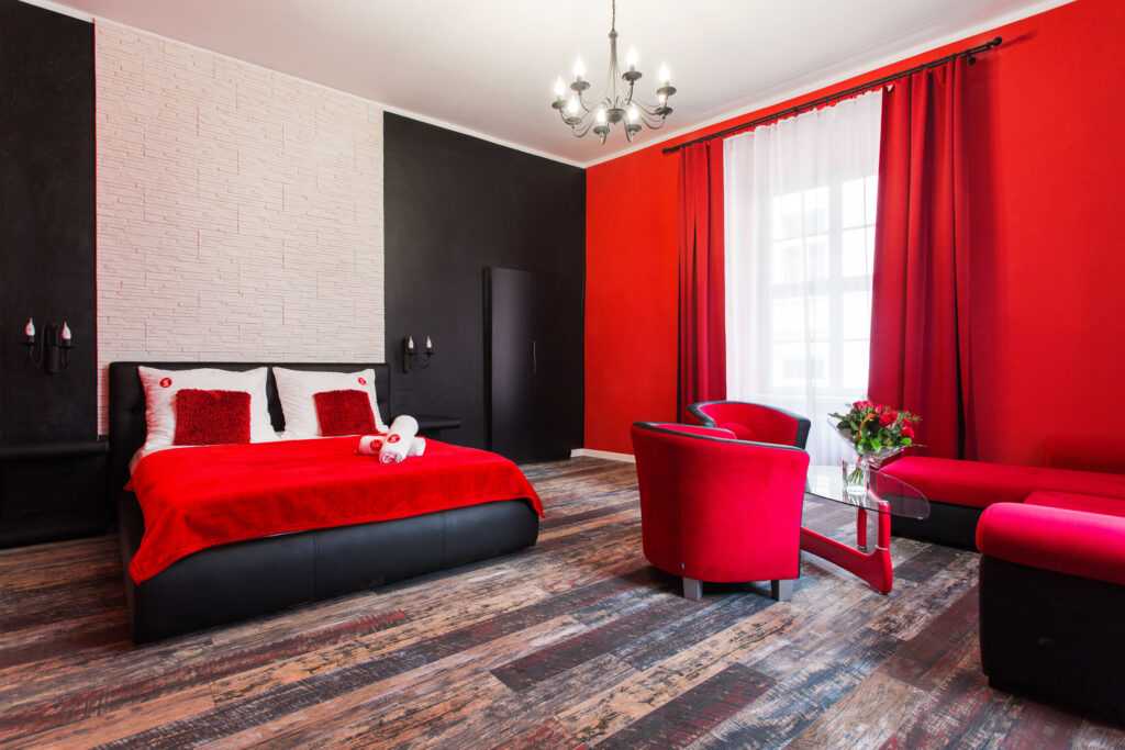 - Красный цвет способен вызывать тревожное состояние и становится причиной учащённого сердцебиения. Под влиянием красного человек может стать агрессивным. Данный цвет не рекомендуется в спальнях, детских комнатах и кухнях, а вот в гостиных будет отлично смотреться, но не в больших количествах.