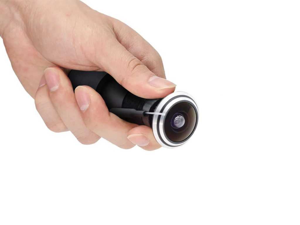 Видеоглазок выводит изображение на монитор телевизора или компьютера. Картинка черно-белая, но очень чистая, в высоком разрешении. Угол обзора устройства составляет 170 °, слепых зон при использовании девайса почти не остается. Видеоглазок не обладает встроенной ИК-подсветкой и может хуже работать в темноте, однако при желании установить соответствующий датчик можно отдельно. Девайс компактный, по внешнему исполнению практическим неотличим от обычного глазка.