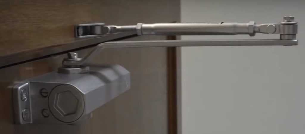 Если главным достоинством системы считается плавное закрывание двери (чтобы не было стука), тогда регулируемое колено рычага размещают перпендикулярно поверхности двери. А расположение жесткого рычага – под углом к этой поверхности.