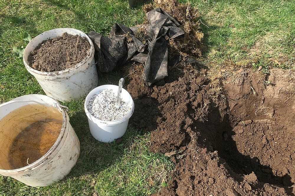Перед высадкой саженца заранее готовят субстрат из смеси перегноя, древесной золы, суперфосфата, калийных удобрений и плодородной почвы. Эту смесь высыпают холмиком на дно ямы.
