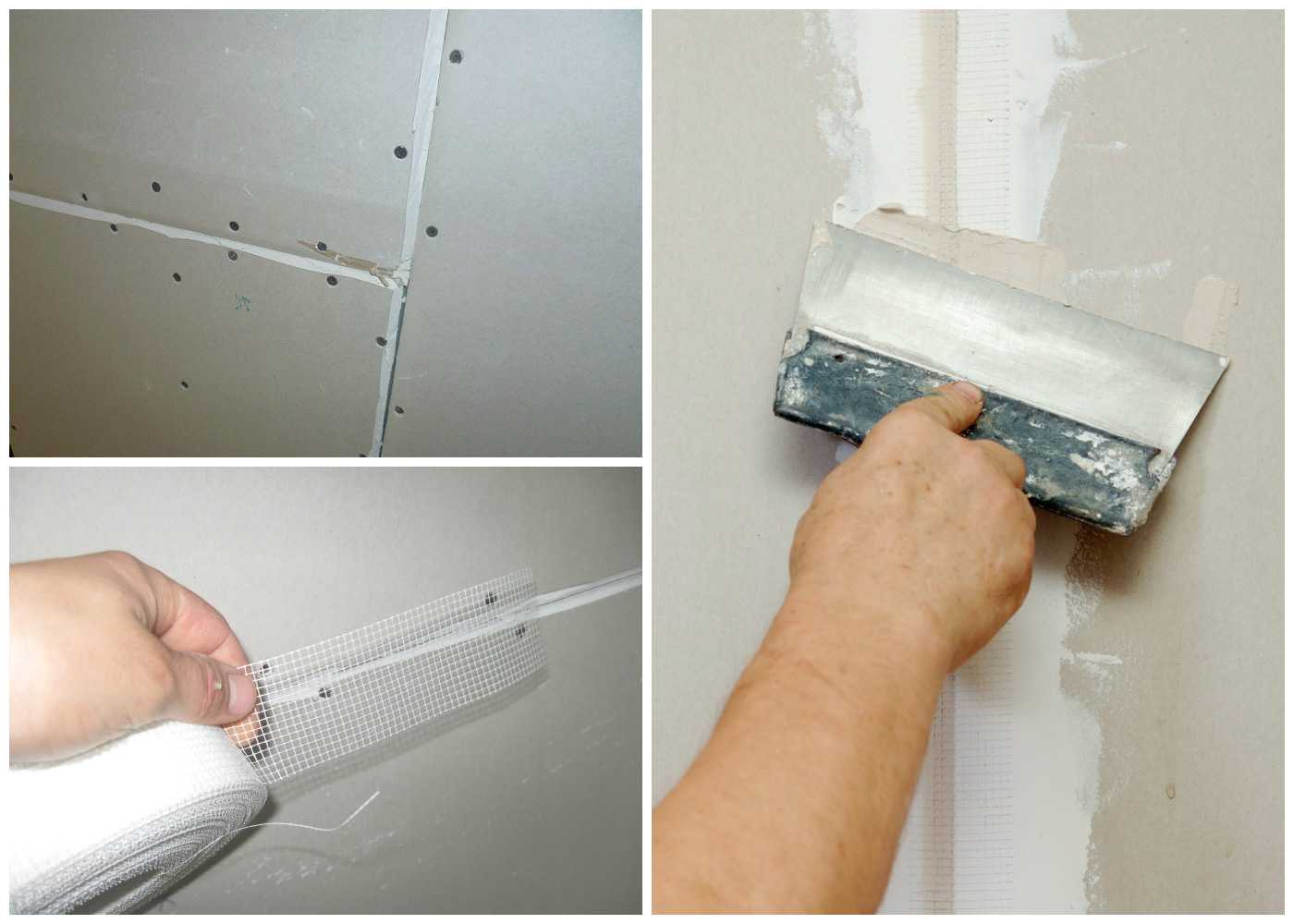 Особое внимание уделите зонам стыков. Не забывайте об углублениях, которые остаются после монтажа саморезов. На швы наклеивается лента-серпянка
