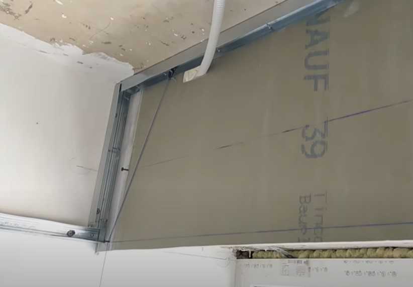 После того, как каркас полностью готов, можно приступать к обшивке гипсокартоном.